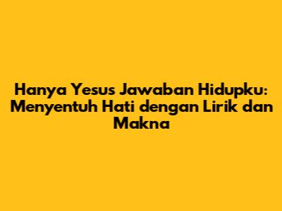 Guys, mari kita selami bersama salah satu lagu rohani yang sangat membekas di hati banyak orang Kristen: "Hanya Yesus Jawaban Hidupku." Lagu ini bukan sekadar rangkaian nada dan kata-kata, tapi sebuah pengakuan iman yang kuat, sebuah pernyataan bahwa hanya di dalam Yesus Kristus kita menemukan makna sejati dari kehidupan. Dalam artikel ini, kita akan membahas lebih dalam tentang liriknya yang penuh makna, chord yang mudah dimainkan, serta bagaimana lagu ini bisa menyentuh hati dan menguatkan iman kita. Yuk, simak!