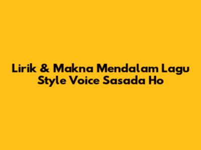 Lirik & Makna Mendalam Lagu Style Voice Sasada Ho