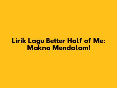 Lagu "Better Half of Me" adalah lagu yang indah dan bermakna. Liriknya yang relatable, musiknya yang easy listening, dan pesan yang positif membuat lagu ini begitu populer dan disukai banyak orang. Buat kalian yang lagi jatuh cinta, lagi kangen sama pacar, atau lagi nyari lagu yang bisa bikin hati tenang, lagu ini cocok banget buat kalian dengerin.