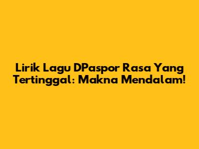 Siapa sih yang nggak kenal D'Paspor? Band yang hits banget di era 2000-an ini memang punya banyak lagu yang easy listening dan liriknya ngena banget di hati. Salah satu lagu mereka yang paling populer adalah "Rasa Yang Tertinggal." Buat kalian yang lagi kangen sama lagu ini atau pengen tahu lebih dalam tentang maknanya, yuk kita bahas liriknya satu per satu!