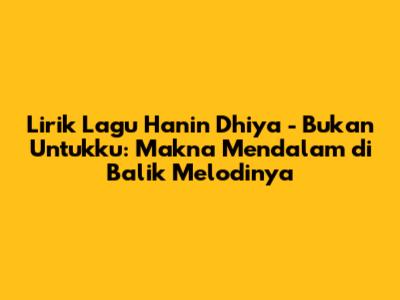 Sebelum kita masuk ke liriknya, kenalan dulu yuk sama Hanin Dhiya. Buat yang belum tahu, Hanin Dhiya ini adalah penyanyi muda berbakat Indonesia yang dikenal dengan suara merdunya dan lagu-lagunya yang relatable banget sama kehidupan sehari-hari. Dia mulai dikenal publik lewat ajang pencarian bakat dan terus berkarya hingga sekarang. Lagu-lagunya seringkali bertema cinta, patah hati, dan perjuangan hidup, makanya banyak anak muda yang suka banget sama karya-karyanya. Salah satunya ya lagu "Bukan Untukku" ini.