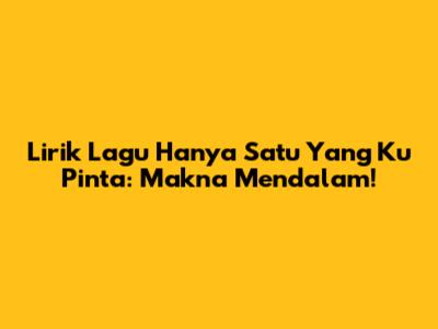 Guys, siapa sih yang nggak kenal lagu "Hanya Satu Yang Ku Pinta"? Lagu ini tuh bener-bener evergreen banget ya, dari dulu sampai sekarang masih sering didengerin. Buat kalian yang lagi nyari lirik lagu Hanya Satu Yang Ku Pinta dan pengen tau makna mendalamnya, yuk simak artikel ini sampai selesai!
