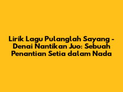 Lagu "Pulanglah Sayang - Denai Nantikan Juo" adalah sebuah lagu yang sangat menyentuh hati dan penuh makna. Liriknya yang puitis, melodinya yang indah, dan pesan yang disampaikan membuat lagu ini menjadi salah satu lagu yang paling digemari oleh banyak orang. Lagu ini bukan hanya sekadar hiburan, melainkan juga sebuah inspirasi bagi kita semua untuk terus berjuang demi cinta yang sejati. Jadi, jangan lupa untuk mendengarkan lagu ini ya, গাইস! Dan semoga lagu ini bisa memberikanmu semangat dan inspirasi dalam menjalani kehidupan cintamu. Intinya, lagu ini recommended banget buat kamu yang lagi galau atau lagi kangen sama pacar!