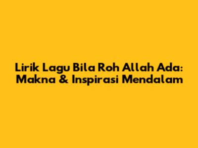 Hey guys! Kalian pernah denger lagu rohani yang bikin hati adem dan penuh semangat? Nah, salah satunya adalah lagu "Bila Roh Allah Ada". Lagu ini bukan cuma enak didengerin, tapi juga punya makna yang dalam banget. Yuk, kita bahas lebih lanjut tentang lirik lagu ini dan inspirasi yang bisa kita dapatkan!