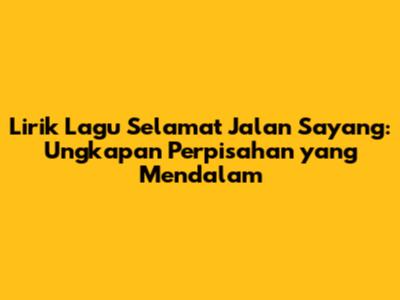 Mendengar lagu "Selamat Jalan Sayang", pasti deh banyak dari kita yang langsung relate sama pengalaman pahit perpisahan. Lagu ini tuh emang punya kekuatan magis buat nyentuh hati dan bikin kita ngerasain emosi yang mendalam. Buat kalian yang lagi cari liriknya atau pengen tau lebih dalam makna dari setiap baitnya, yuk simak artikel ini sampai selesai!