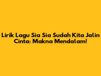 Siapa nih yang lagi patah hati? Pasti relate banget sama lagu yang satu ini, yaitu "Sia Sia Sudah Kita Jalin Cinta". Lagu ini tuh bener-bener ngena banget di hati, apalagi buat kalian yang baru putus cinta atau lagi ngerasa hubungan kalian nggak ada arah yang jelas. Yuk, kita bedah liriknya lebih dalam dan cari tahu makna yang tersembunyi di balik lagu ini!