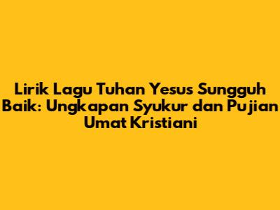 Lagu Tuhan Yesus Sungguh Baik merupakan salah satu lagu rohani Kristen yang sangat populer di Indonesia. Liriknya yang sederhana namun penuh makna, serta melodinya yang indah dan menyentuh hati, membuat lagu ini sering dinyanyikan dalam berbagai acara ibadah, persekutuan, maupun dalam keseharian umat Kristen. Lagu ini menjadi ungkapan syukur atas kebaikan Tuhan Yesus yang tak terhingga dalam kehidupan setiap orang percaya.