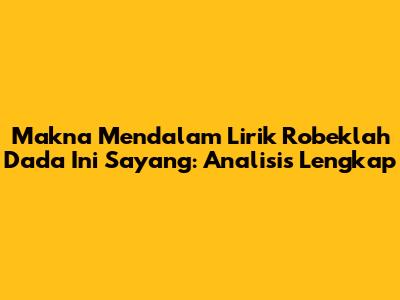 Lirik lagu 'Robeklah Dada Ini Sayang' adalah sebuah karya yang sarat akan emosi dan makna mendalam. Lagu ini, yang seringkali dinyanyikan dengan penuh penghayatan, berhasil menyentuh hati pendengarnya melalui rangkaian kata yang puitis dan sarat akan pengalaman. Dalam artikel ini, kita akan menyelami lebih dalam tentang lirik lagu ini, memahami struktur, tema, dan pesan yang ingin disampaikan.